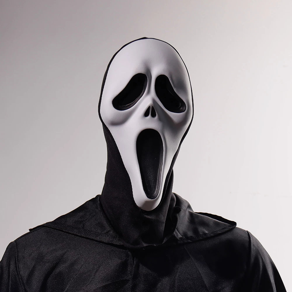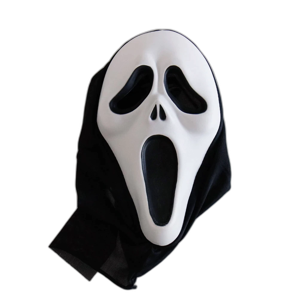 - This is a lightweight scary plastic ghost mask with a black mesh hood that entirely covers the head.