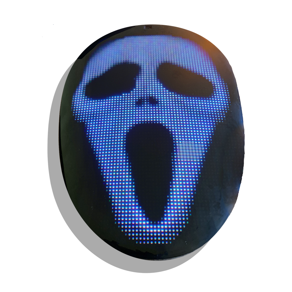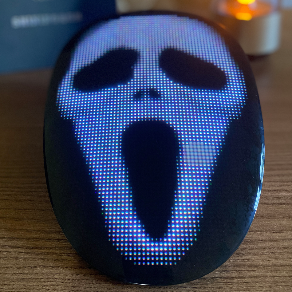 transform your face in seconds with this light-up mask. This cosplay accessory comes pre-installed with 40 animated videos and 35 static faces for you to wear