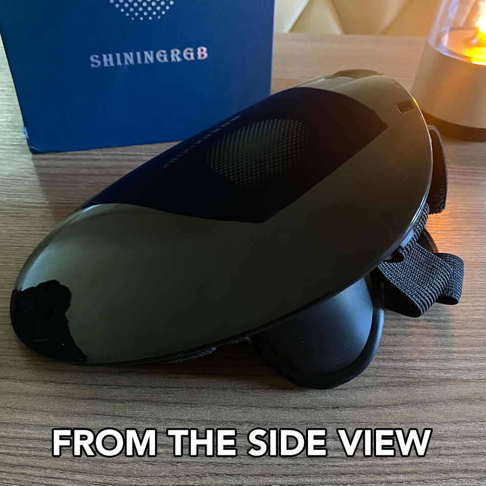 Made of tough plastic and latex, you can count on this programmable LED mask to last. Its ergonomic design, soft interior, and pre-cut eyeholes ensure a comfy fit all day. Dimensions: 21.5 x 16.5 x 3 cm