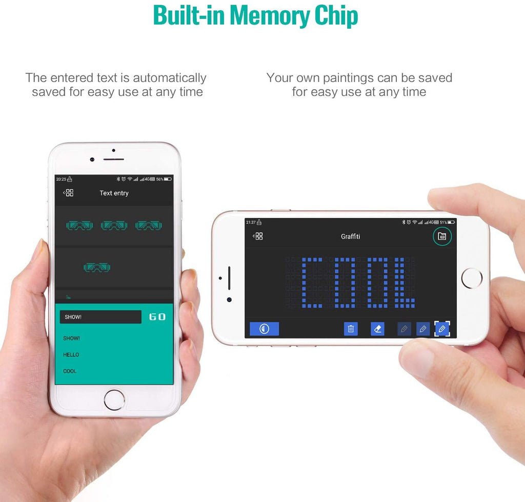 • Bluetooth enabled to connect to the Shining App (iOS 7 or later&Android 4.4 or later / Not available except for iOS&Android) to instantly customize your messages!