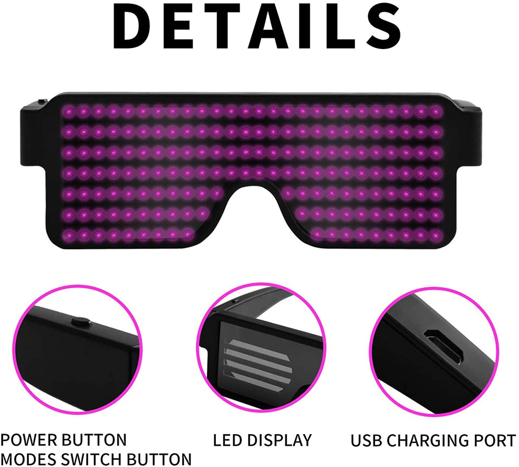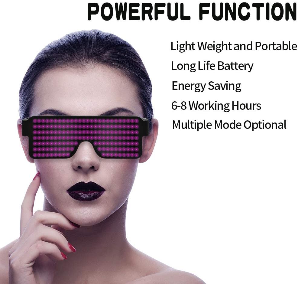 • Wide Application This Dynamic LED Glowing Glasses is pretty cool and attractive. It is suitable for parties, nightclubs, Halloween, Dances, Concerts etc. You will be the focus and most flamboyant star with the Led glasses.